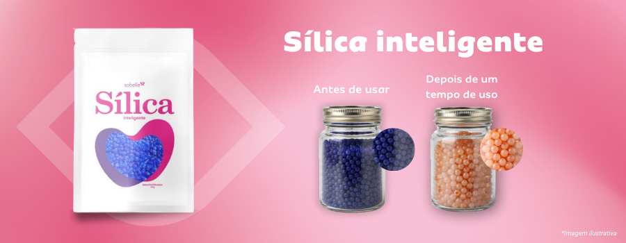 Mantenha sua cola sempre protegida! Durante o verão, o abre e fecha do armário pode estragar seu adesivo. Utilize a Sílica Inteligente Sobelle em seu pote hermético. Ela muda de cor (do azul para o rosa) para te avisar exatamente quando é hora de regenerá-la, garantindo que sua Cola Glamour esteja sempre fresca para a próxima cliente