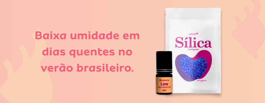 No verão brasileiro, o calor é combatido com ar-condicionado no nível máximo dentro dos estúdios. O que muitas profissionais esquecem é que o ar-condicionado é, essencialmente, um desumidificador. Ele retira a umidade do ar para baixar a temperatura. Se o seu higrômetro marca abaixo de 40%, aquela sua cola favorita de secagem rápida (como a High) vai começar a demorar para secar, resultando em “stickies” (cílios grudados) e demora no procedimento. Para esses cenários, a estratégia muda: entra em cena a Cola Low e o controle rigoroso da Sílica Inteligente.